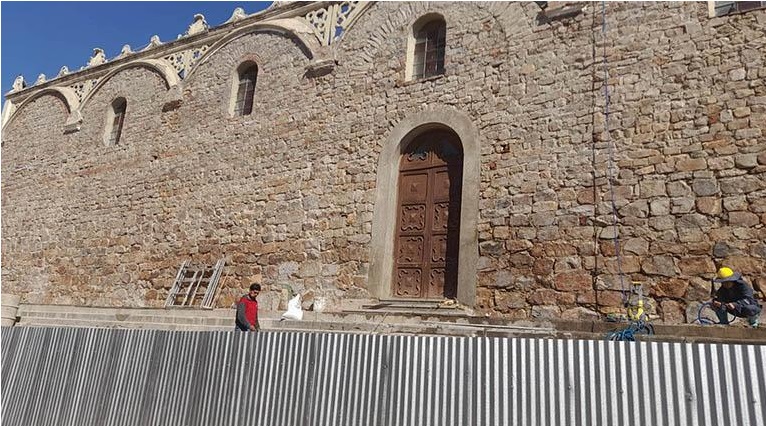 El Ministerio de Culturas, la Alcaldía de Quillacollo y el Colegio de Arquitectos del municipio acordaron ayer paralizar los trabajos de refacción en uno de los muros del templo San Ildefonso y trabajar en un proyecto para su intervención.