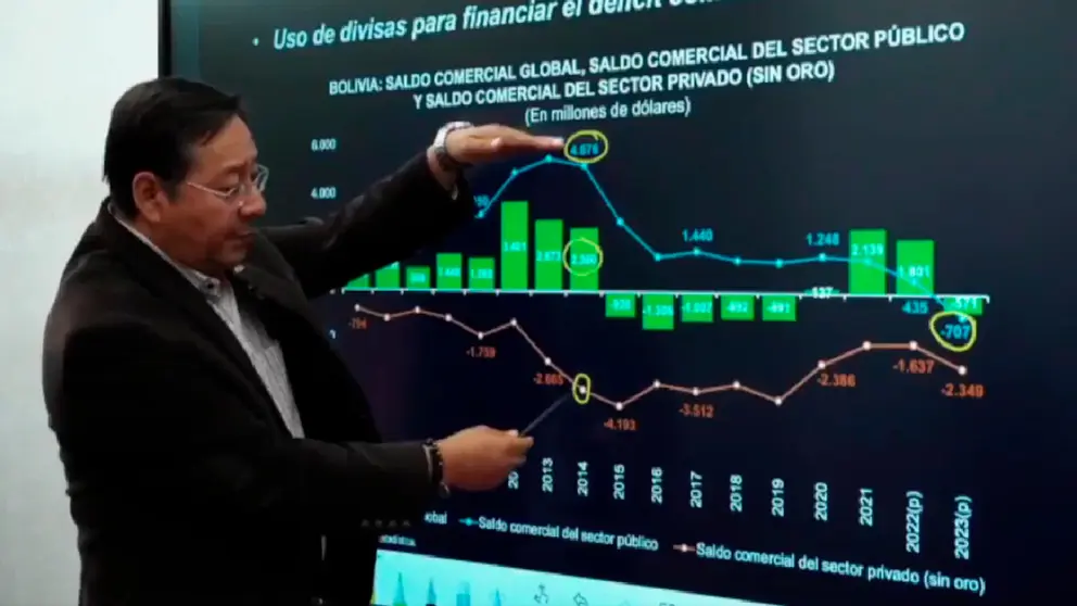 “La exportación del gas nos daba ingresos, nos daba divisas, los dólares, que fueron usados no solo por el sector público, sino sobre todo los dólares del sector hidrocarburo producto de la nacionalización eran fundamentalmente usados por el sector privado”, señaló.