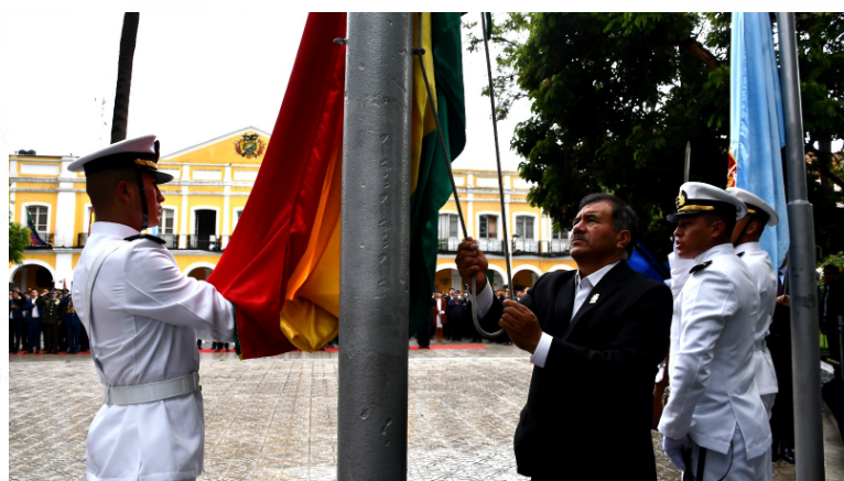 El gobernador Humberto Sánchez destacó que las autoridades deben rendir homenaje a los símbolos patrios como la tricolor, la Whipala, la bandera del departamento de Cochabamba y de la reivindicación marítima.