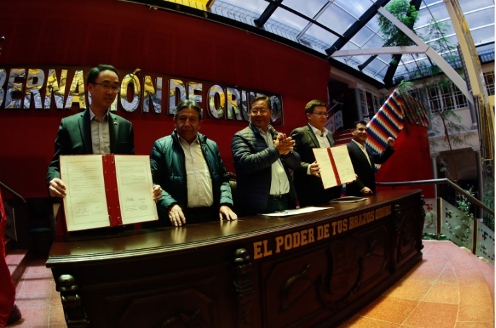 El presidente Luis Arce, quien participó de la firma, afirmó que, en homenaje a los 243 años de la gesta libertaria de Oruro, se concretiza el acuerdo para la construcción inmediata de las obras de la factoría.