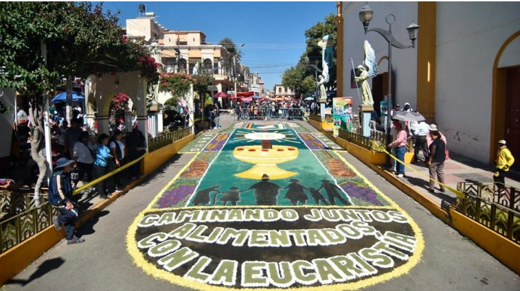 Desde la madrugada de este jueves, estudiantes de distintos colegios prepararon minuciosamente las obras con figuras religiosas y mensajes de fe y devoción.