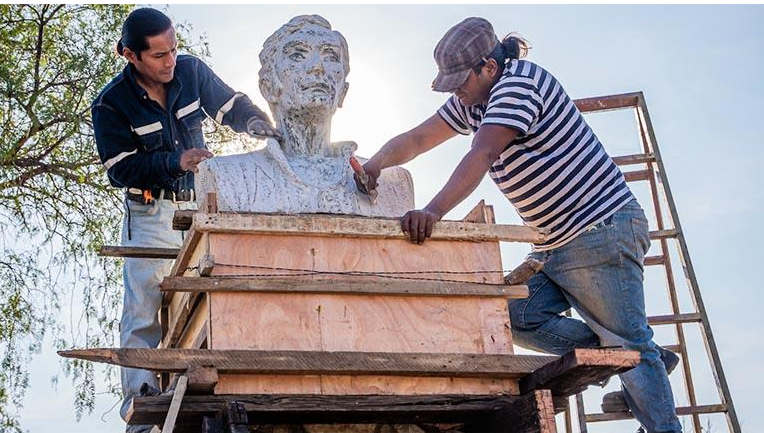 El secretario de Desarrollo Productivo, Turismo y Cultura, Enrique Mendieta, inspeccionó este martes los trabajos de mantenimiento y restauración de bustos en