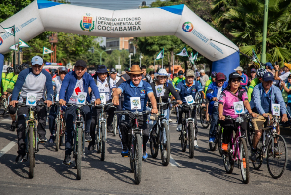 Las actividades organizadas por el Día del Peatón y del Ciclista, por parte de la Gobernación de Cochabamba, iniciaron con una caravana