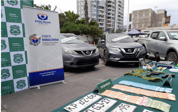 La Unidad de Análisis Criminal y Focos Investigativos de la Fiscalía de Tarapacá junto a la Sección de Encargo y Búsqueda de Vehículos (SEBV) de Carabineros realizaron los operativos simultáneos de Iquique, Alto Hospicio, Arica y Santiago.