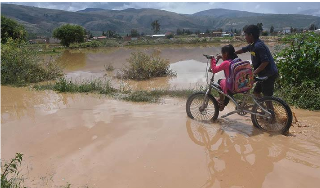 Dos ríos: Cruza Mayu y Juchuy Pajchiritu, que por décadas estuvieron secos, se llenaron de agua de extremo a extremo. El turbión arrastró troncos, piedras y basura que colmataron los puentes hasta el caudal se desbordó hacia la comunidad de Sajsa anegando 15 casas.