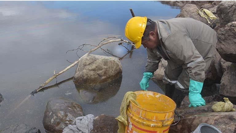 Emplearán chorizos y paños absorbentes para retirar aceite de Corani