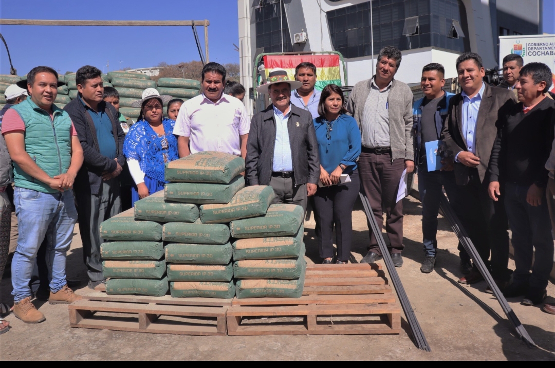 “En el marco de la responsabilidad productiva, de acuerdo a nuestro plan territorial, hemos entregado este material de construcción con la finalidad de paliar esta crisis hídrica que tenemos en el departamento de Cochabamba”, sostuvo el gobernador Humberto Sánchez.