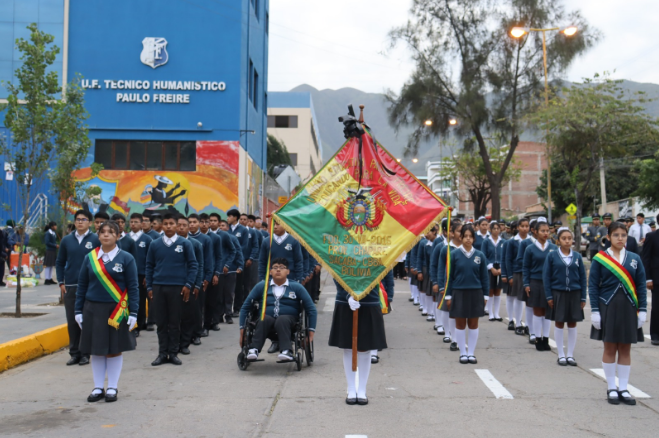 Con la realización de desfiles cívicos y escolares en los distritos 1 y 2, Sacaba conmemoró el Día de la Reivindicación Marítima recordando los 145 años de la heroica defensa de Calama.