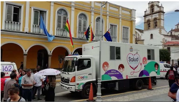El bus “Salud sobre ruedas” proporcionará atención gratuita a niños, niñas y adolescentes de los diferentes distritos del municipio en medicina general, odontología y vacunación, además realizará campañas educativas para prevenir enfermedades y el mismo fue donado por Save the Children y el Gobierno Autónomo Municipal de Cochabamba proporcionará recursos humanos, equipo de ecografía, insumos e instrumental médicos y odontológicos. La inversión es mayor a los 700 mil bolivianos.