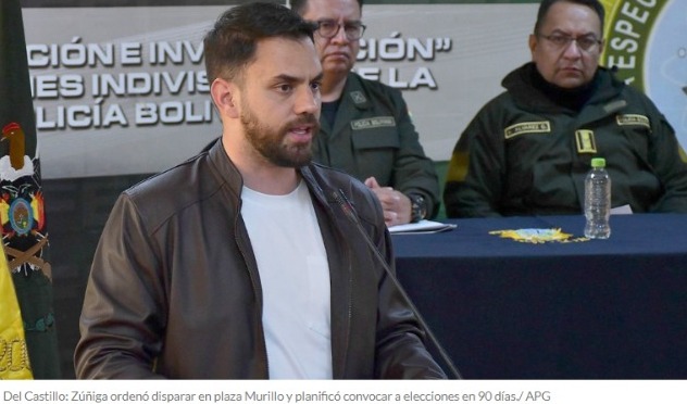 DEL CASTILLO: ZÚÑIGA ORDENÓ DISPARAR EN PLAZA MURILLO Y PLANIFICÓ CONVOCAR A ELECCIONES EN 90 DÍAS
