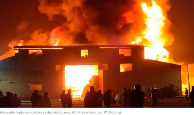 REPORTAN INCENDIO EN UNA RECICLADORA DE PLÁSTICOS EN EL ALTO