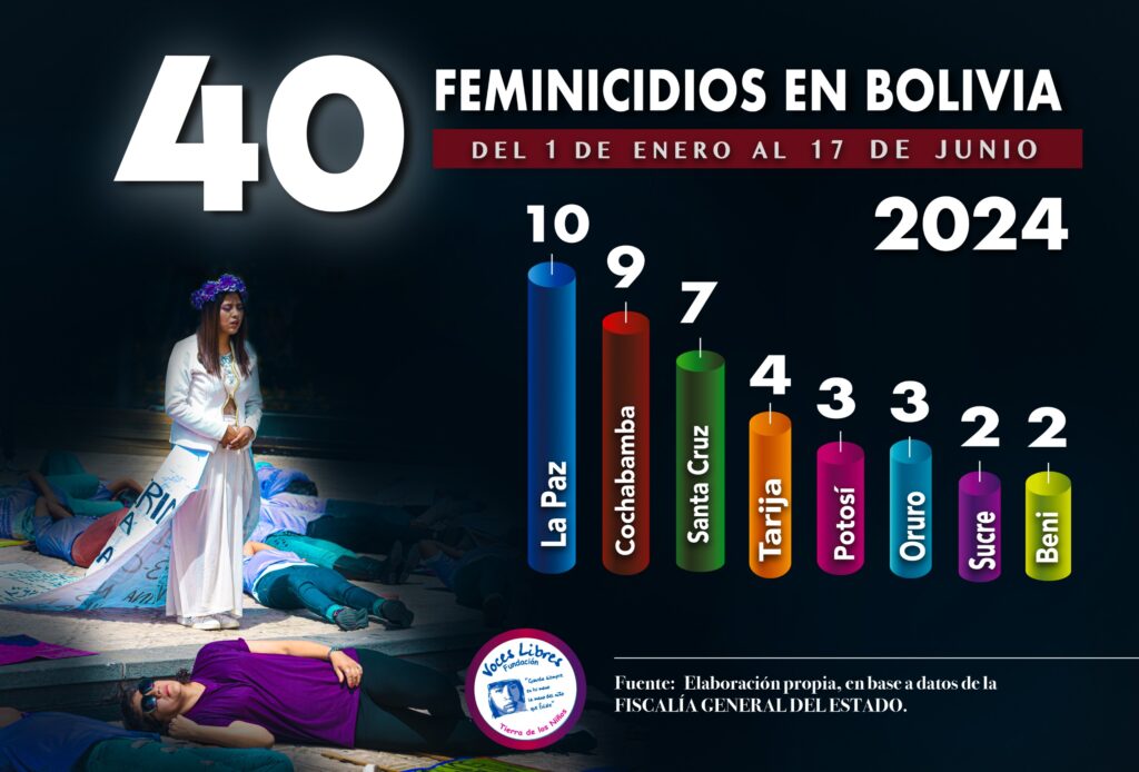 Bolivia registró 40 casos de feminicidio y 18 Infanticidios, entre el 1 de enero y el 17 de junio de 2024. En cuanto a los asesinatos de mujeres, La Paz tiene 10 casos, Cochabamba 9, Santa Cruz 7, Tarija 4, Potosí 3, Oruro 3, Chuquisaca 2 y Beni 2. En cuanto a los infanticidios, La […]