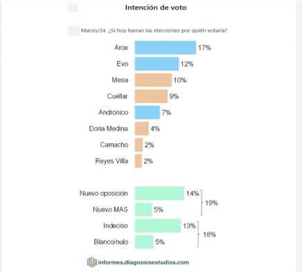 Arce, Morales, Mesa y Cuellar mantienen los primeros lugares en intención de voto, pero los indecisos se mantienen altos