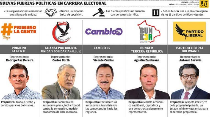 La Alianza por Bolivia Unida y Solidaria (Albus), Bunker Tercera República, Cambio 25, Primero La Gente y Partido Liberal Boliviano son algunas de las nuevas fuerzas políticas que siguen carrera electoral rumbo a las elecciones generales 2025. Rodrigo Paz Pereira, Agustín Zambrana Arze, Carlos Borth Irahola, Vicente Cuellar y Antonio Saravia son las caras más […]