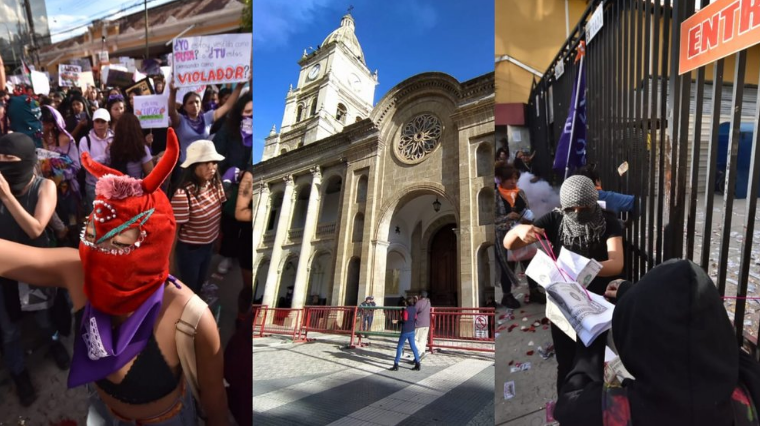 Masiva ‘Marcha 8M’ toma calles de la Llajta; mujeres arrojan pintura al Tribunal de Justicia