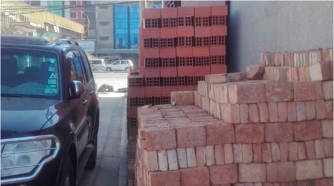 Materiales de construcción como ladrillo y cemento, troncos, piedra laja, letreros, mesas y sillas, entre otros, interrumpen el paso libre de los transeúntes.