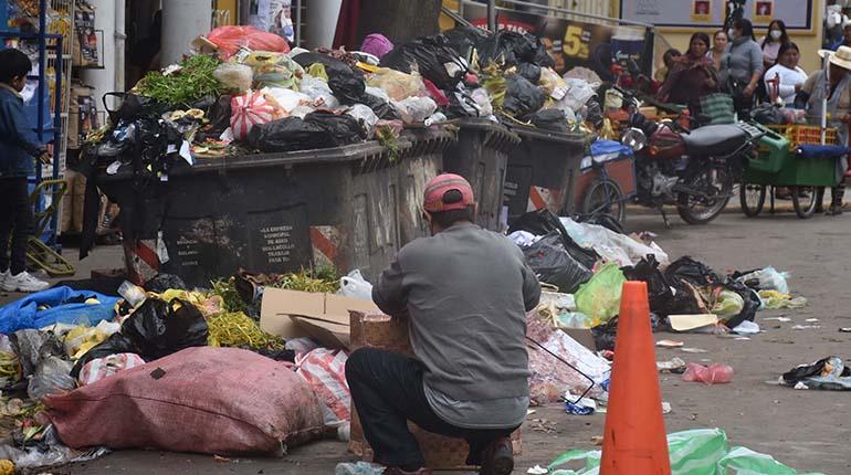La basura comienza a acumularse en las calles de los municipios de Quillacollo y Colcapirhua por el bloqueo que realizan los vecinos de nueve comunidades de la Central Regional de Cotapachi desde hace dos días.