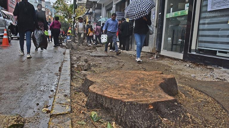 Talan tres árboles en la San Martín por riesgos y renovación de aceras