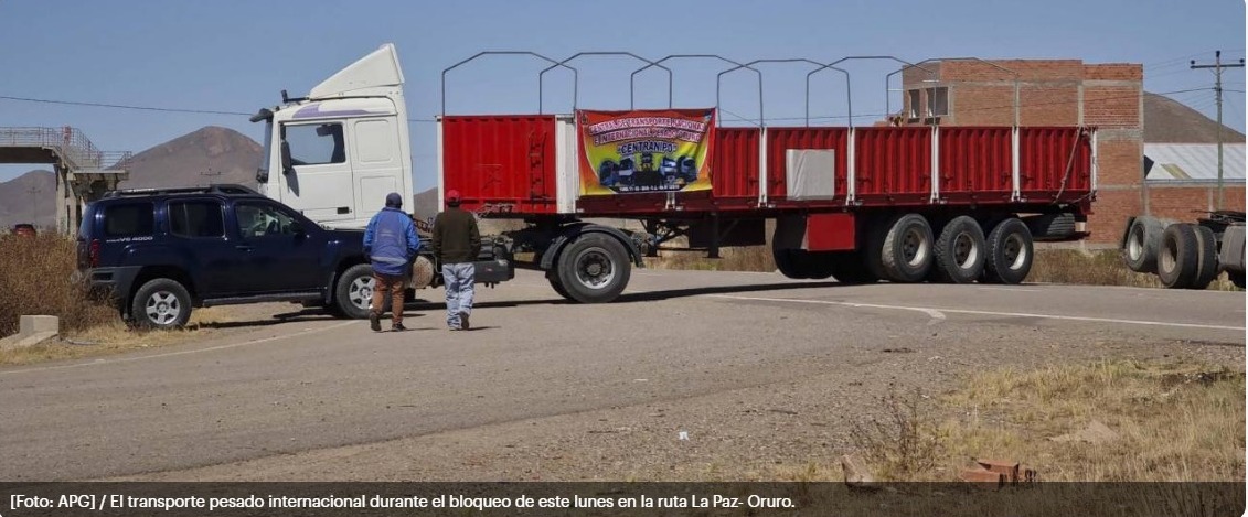 El pasado lunes, el transporte pesado internacional instaló bloqueó en la comunidad de Pasto Grande, en la carretera entre La Paz y Oruro.