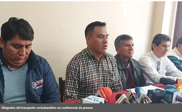 Los dirigentes del transporte libre y federado de Cochabamba ratificaron este lunes el paro de 24 horas con bloqueos para mañana martes 28 de mayo en todo el departamento para exigir el incremento de los pasajes.Ç